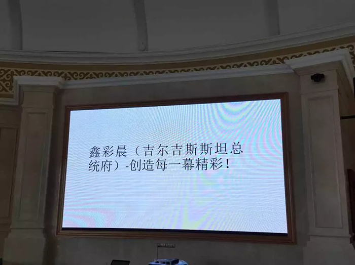 值得一提的是,2016年8月由鑫彩晨承制的吉爾吉斯坦總統(tǒng)府LED顯示屏項目落成,該項目采用鑫彩晨常規(guī)室內(nèi)X4產(chǎn)品,每塊30平方,共計三塊大屏,體現(xiàn)了鑫彩晨響應(yīng)國家號召,挖掘企業(yè)潛力,開拓創(chuàng)新的踐行意義,也成為了鑫彩晨的代表性案例。