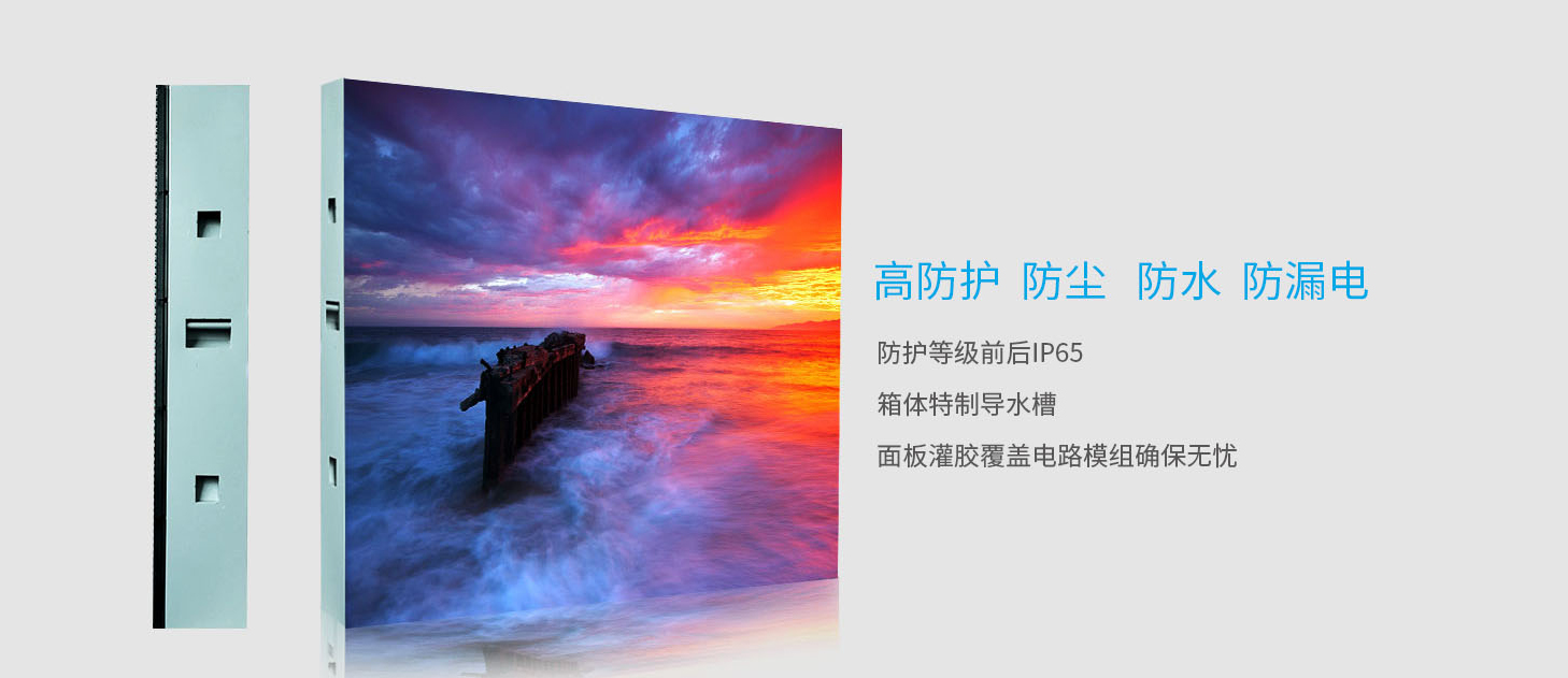對(duì)于戶外LED顯示屏,在選擇的時(shí)候需要注意什么?先讓我們看看鑫彩晨戶外顯示屏系列的三大特點(diǎn):節(jié)能、穩(wěn)定、高亮。首先,是它的高防護(hù)、防塵、防水、防漏電,擁有防護(hù)等級(jí)的前后IP65,箱體特質(zhì)導(dǎo)水槽和面板灌膠覆蓋電路模組,確保運(yùn)行順暢,不會(huì)有任何意外發(fā)生,真正實(shí)現(xiàn)省電、穩(wěn)定和節(jié)能環(huán)保。