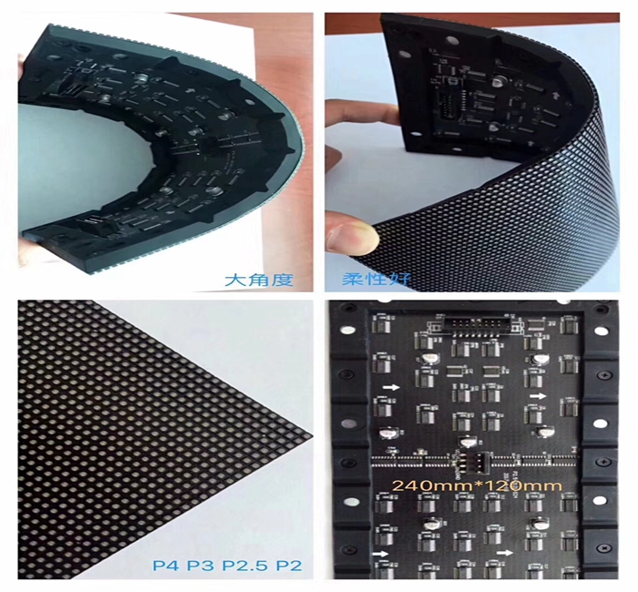軟模組LED顯示屏具有薄型、輕量、體積極小、高像素密度、可顯示彎曲面、安裝成本低等特性,可實現(xiàn)各種屏幕形狀的顯示需求,提供多種屏幕尺寸、清晰度,此外還可以按照用途設(shè)計出重視特性(對比度、色斑、混色性等)的色排列。