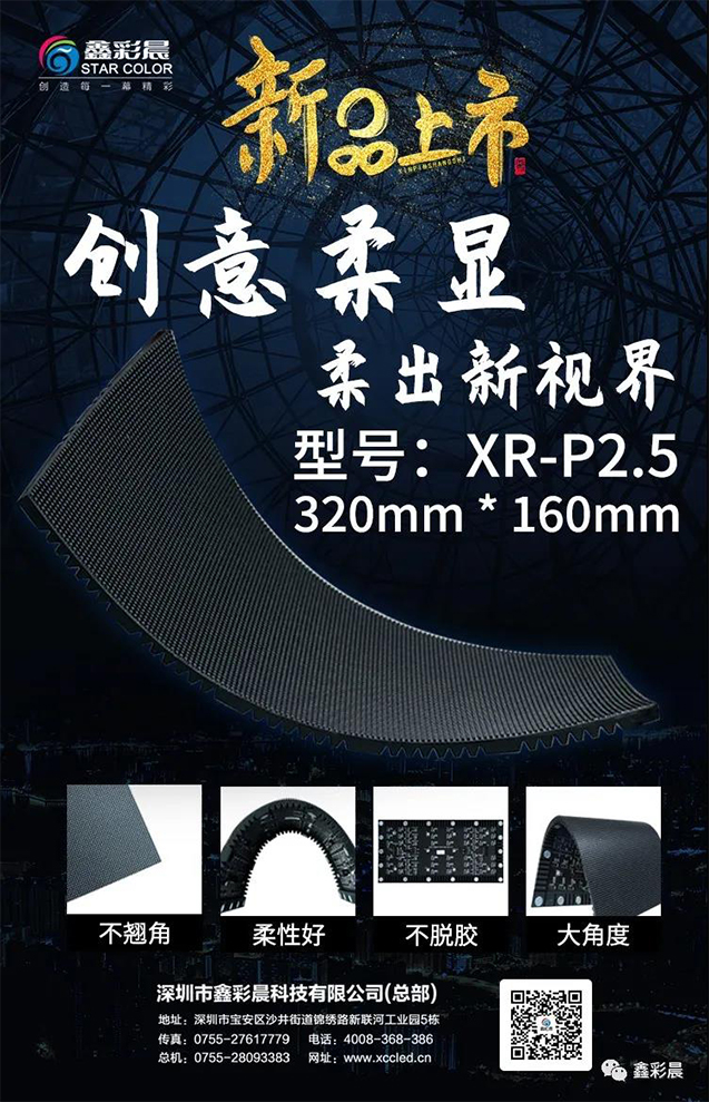 鑫彩晨新推出320*160系列柔性屏覆蓋不同點(diǎn)間距,具備更好的視覺(jué)亮度,安裝效率高,拼縫更完美