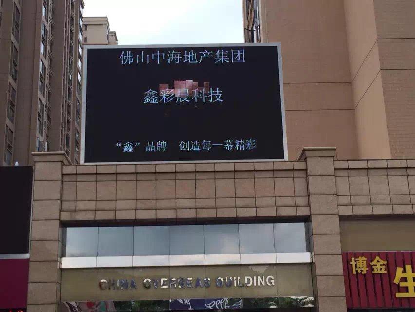 廣東省佛山中海地產(chǎn)戶外P8全彩led顯示屏安裝調(diào)試完畢,由深圳鑫彩晨科技有限公司承辦。