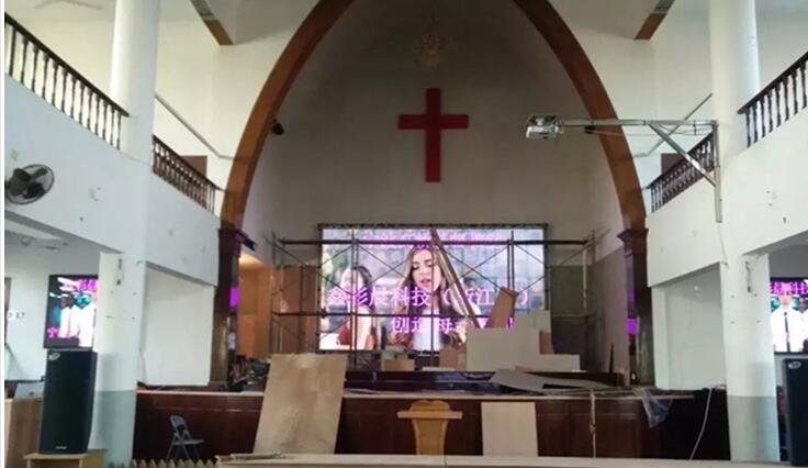 知名品牌鑫彩晨為寧波高橋基督教堂室內全彩led顯示屏成功落戶