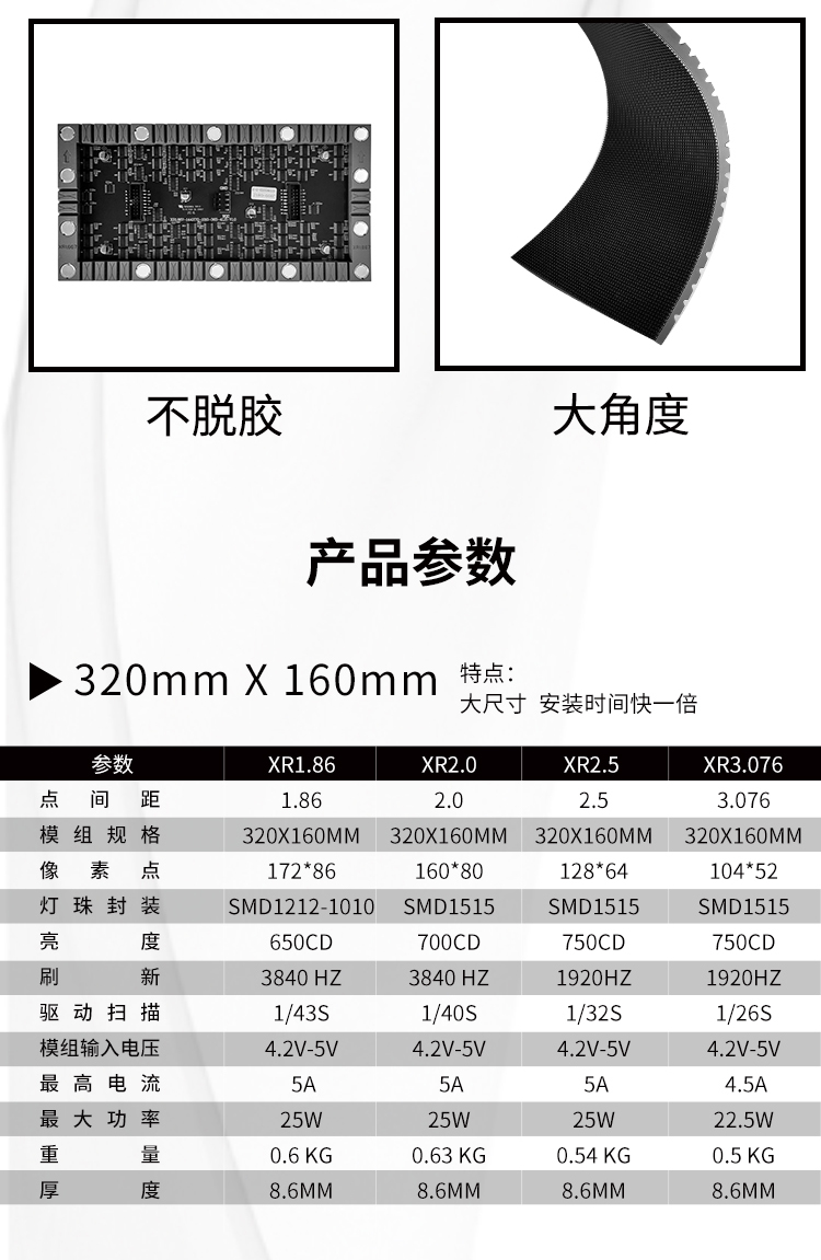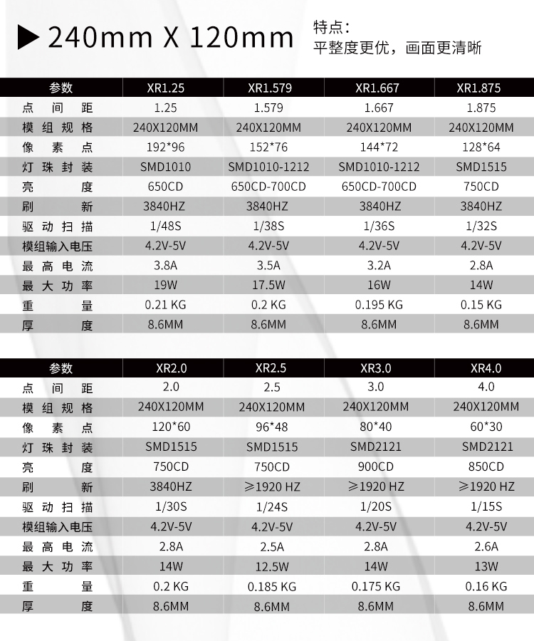 P1.5625這款軟膜組系列,全息200*150mm,標(biāo)準(zhǔn)尺寸設(shè)計,低電流,低熱量,搞對比度,高亮高灰,刷新3840Hz,真16bit灰度等級,搭載SMD1212黑燈,黑屏整屏暮色完全一致,像素吻合1920*1152/3840*2304,2K/4K分辨率,播放高清視頻,達(dá)到最完美播放效果。