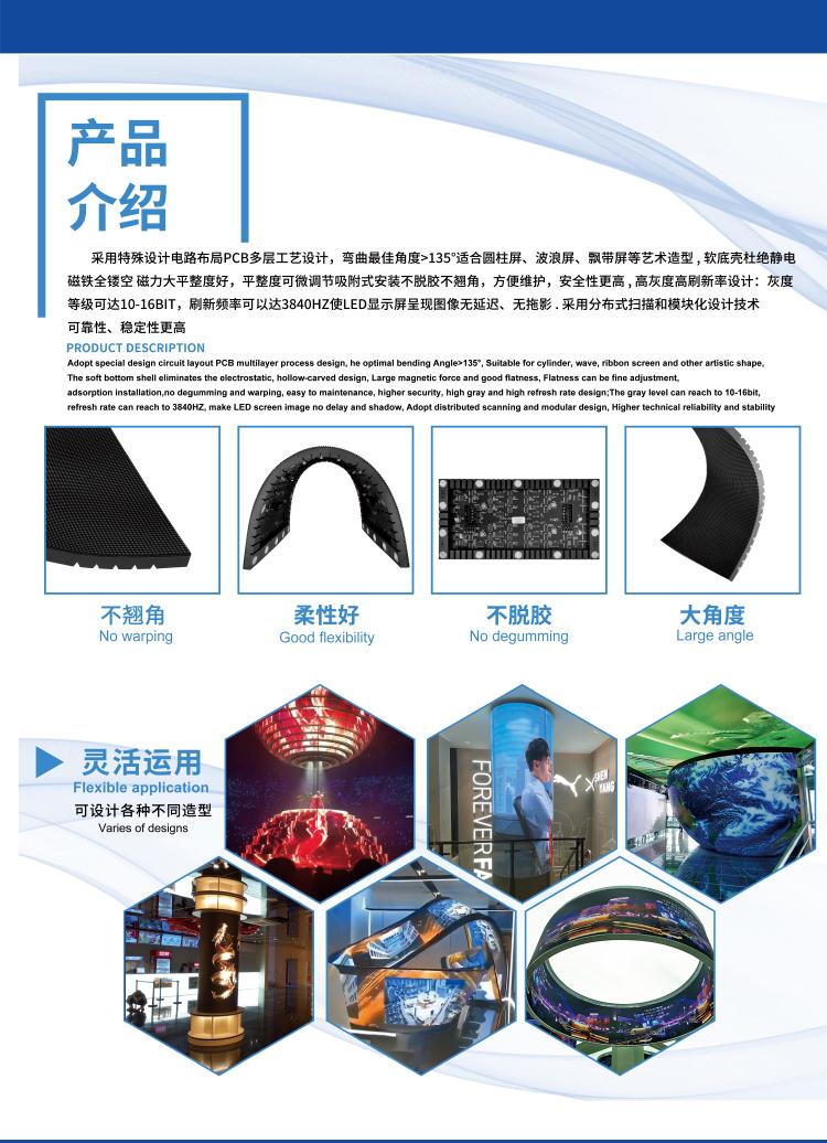P1.579這款軟膜組系列,全息240*120mm,標(biāo)準(zhǔn)尺寸設(shè)計(jì),低電流,低熱量,搞對(duì)比度,高亮高灰,刷新3840Hz,真16bit灰度等級(jí),搭載SMD1212黑燈,黑屏整屏暮色完全一致,像素吻合1920*1152/3840*2304,2K/4K分辨率,播放高清視頻,達(dá)到最完美播放效果。