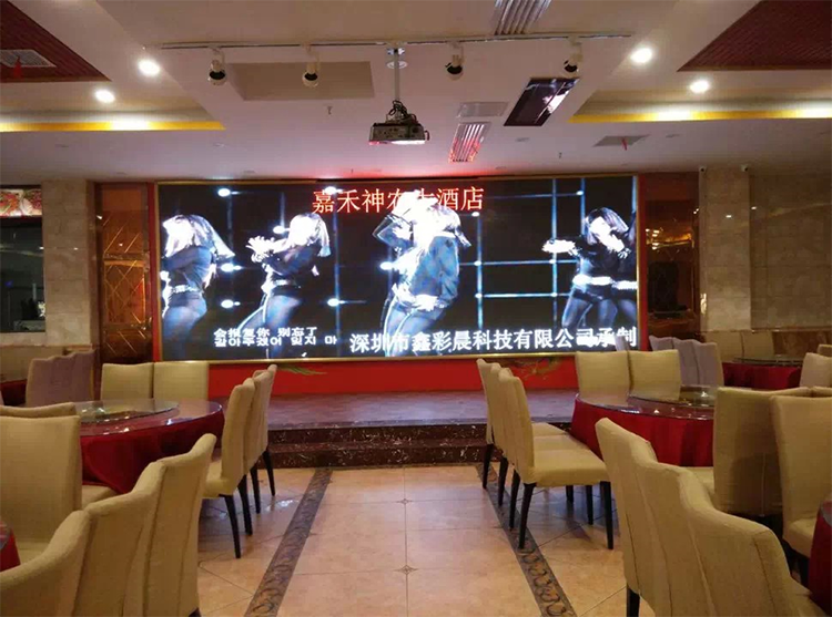 湖南郴州嘉禾神農(nóng)大酒店室室內(nèi)全彩屏 由深圳鑫彩晨科技有限公司承辦。