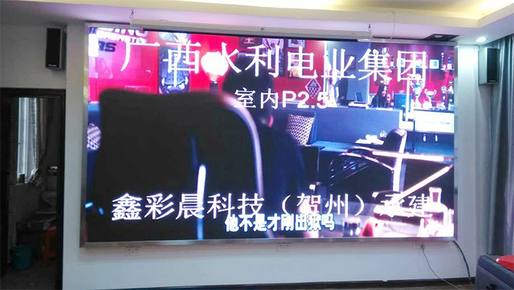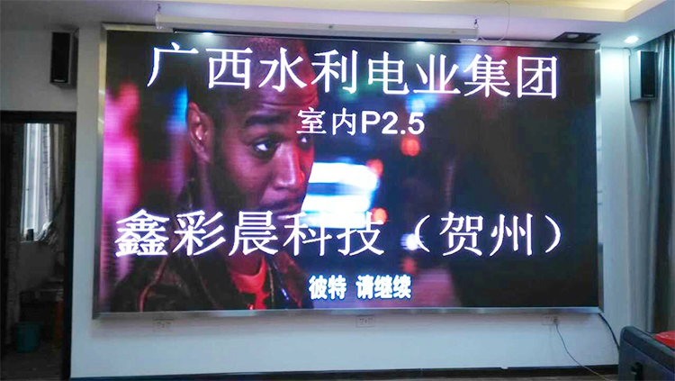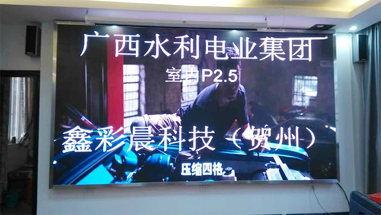 廣西水利電業(yè)集團(tuán)室內(nèi)高清 高密度led顯示屏P2.5安裝調(diào)試完畢,由深圳廠家鑫彩晨科技有限公司承辦。