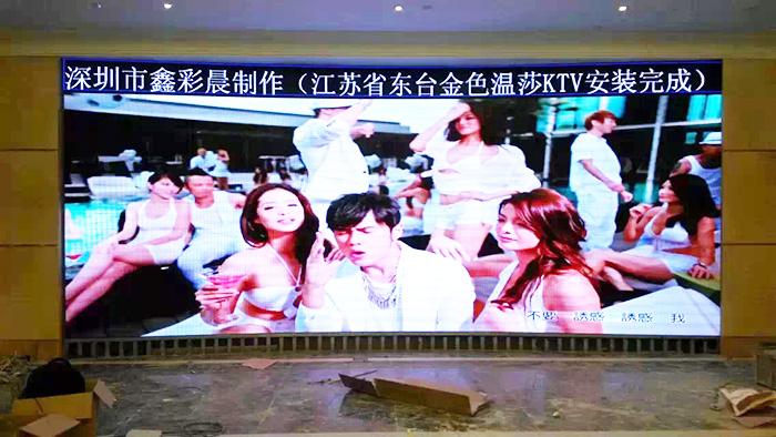 江蘇東臺金色溫臺KTV全彩led顯示屏p4 安裝調(diào)試完畢,由深圳廠家鑫彩晨科技有限公司承辦。