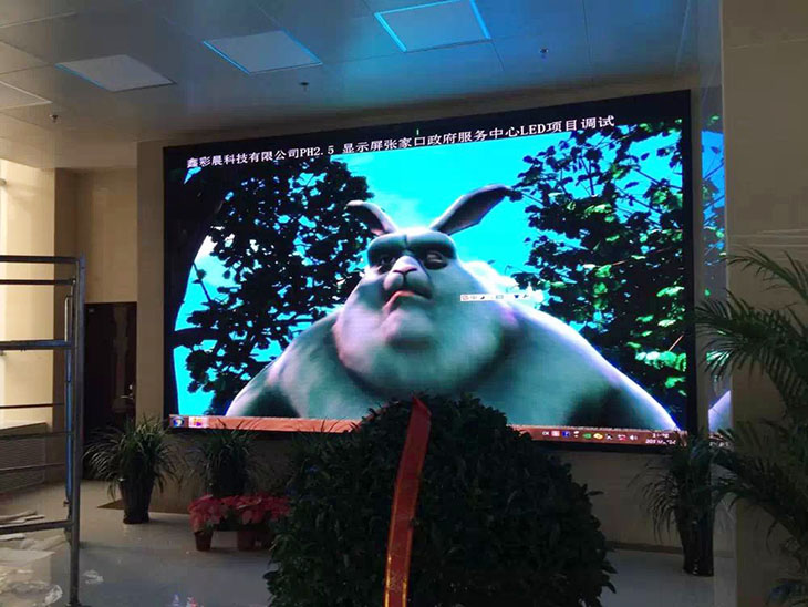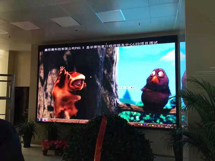 河北張家口巿政府P2.5全彩LED顯示屏安裝調(diào)試完畢,由深圳廠家鑫彩晨科技有限公司承辦。