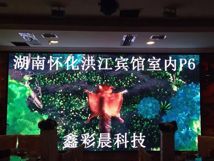 湖南懷化洪江賓館室內(nèi)P6全彩led顯示屏安裝調(diào)試完畢,由深圳市鑫彩晨科技有限公司承制。