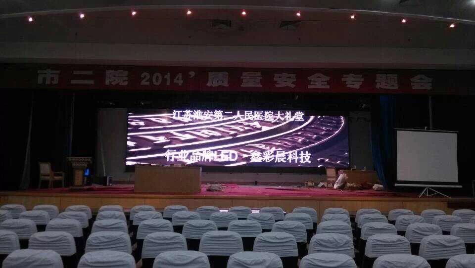 江蘇淮安第二人民醫(yī)院室內(nèi)全彩LED顯示屏由LED顯示屏領(lǐng)導(dǎo)品牌 鑫彩晨承制! 此項(xiàng)目采用鑫彩晨室內(nèi)P5高清LED顯示屏,整屏共40平方米。