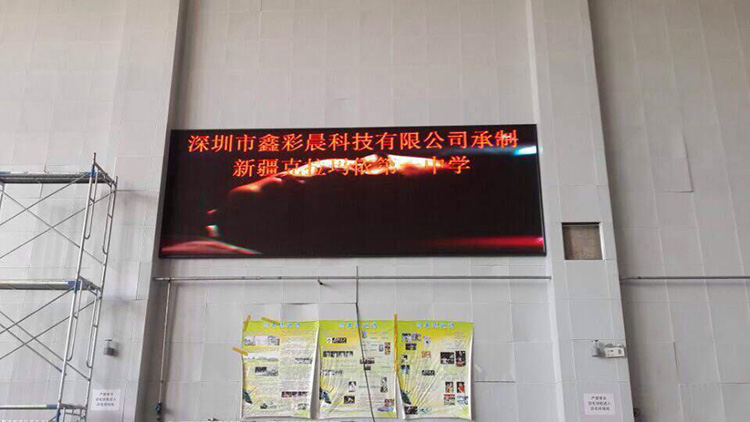 新疆克拉瑪依第一中學(xué)安裝室內(nèi)P4全彩 led顯示屏 由深圳鑫彩晨科技有限公司承辦。