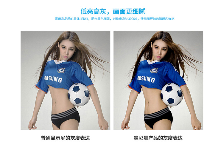 3.低亮高灰,亮度降到20%時仍能呈現(xiàn)完美灰度表現(xiàn),顯示一致性非常好。低亮度下顯示屏灰度表現(xiàn)近乎完美,其顯示的畫面層次感和鮮艷度高于傳統(tǒng)顯示屏。